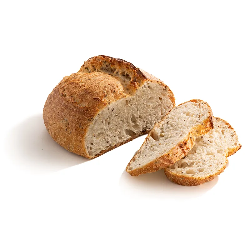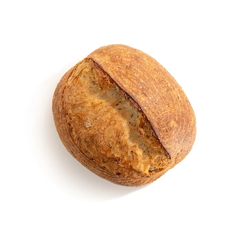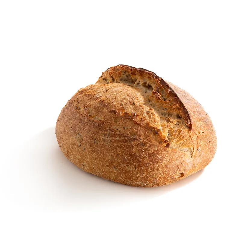 مناسب برای 6 تا 8 نفر، نان مولتی گرین خمیر ترش با عسل، مغز آفتابگردان، کتان، کدو و کنجد، با طول حدودی 20 سانتی متر